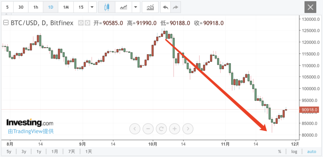 其一,由于近期下跌幅度过大,以比特币为主的加密货币市场迎来超跌反弹。以比特币为例,其年内一度涨至126000美元以上,11月21日一度跌至80000美元关口,回调幅度巨大。